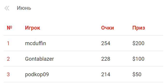 Результаты "Лиги бесплатных турниров" за июнь.