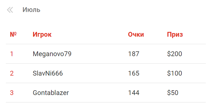 Результаты "Лиги бесплатных турниров" за июль.