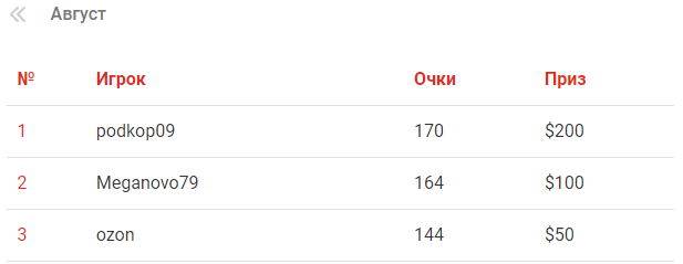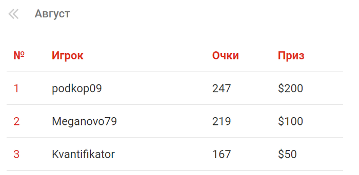 Результаты "Лиги бесплатных турниров" за август.