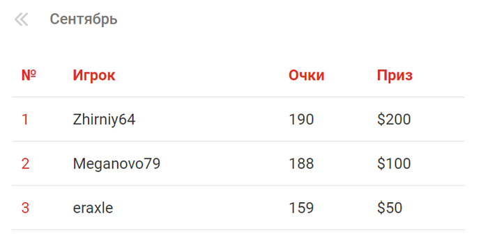 Результаты "Лиги бесплатных турниров" за сентябрь.