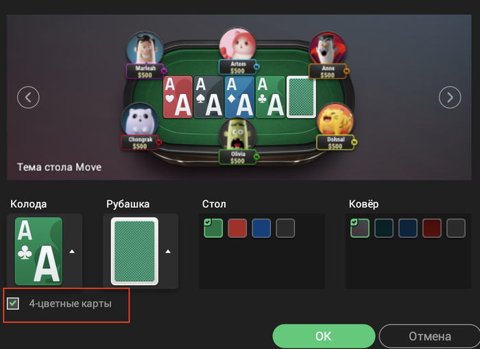 Если вы предпочитаете четырехцветную колоду и хотите отключить анимацию аватаров, эти возможности будут в настройках профиля.
