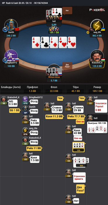 M45PL @ 28.04.22так ты сам у нас любитель на 4556 заколить 4бет и ессно поймать сет) так что чего жаловаться то