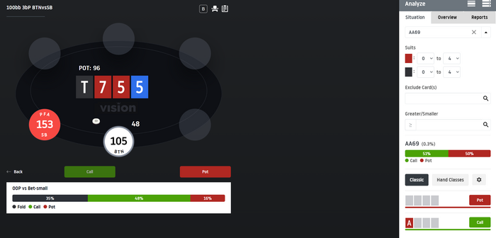 Маленький вопрос. В вижене указан другой борд . Это потому что все руки , так сказать не возможно просчитать и мы берём какой то похожий спот?