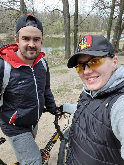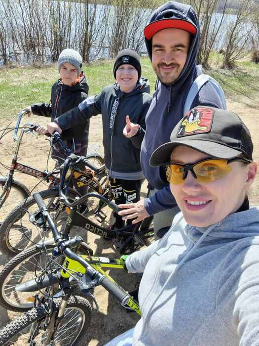 На месте. Быстро доехали. Один раз цепь слетела и разок шину проткнул