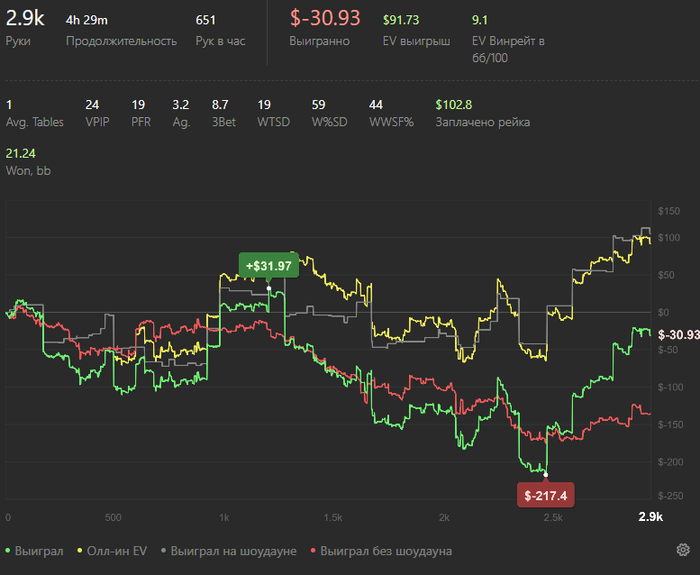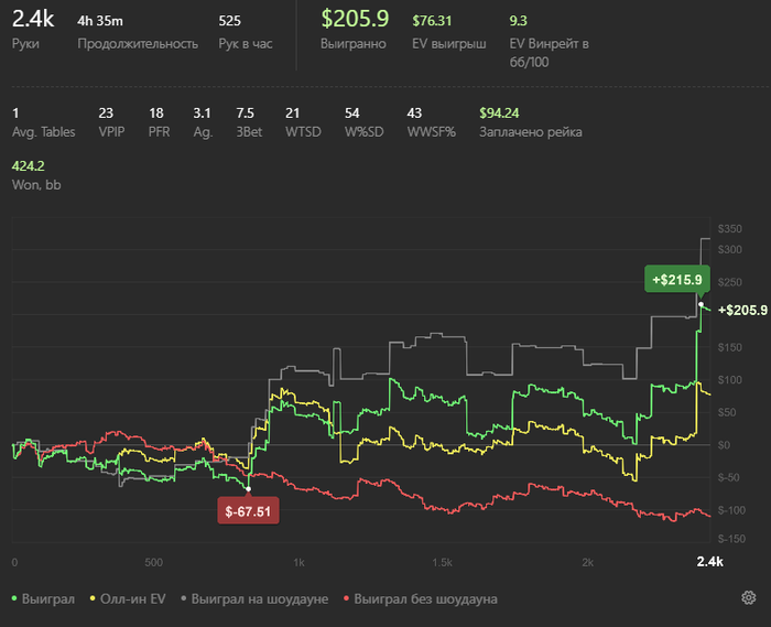 Постепенно дело идёт, одного регулярного фиша я достал, он на ривере на 5фд колит уже мой 3х овербет без карты в масть, на поделить или проиграть 😆