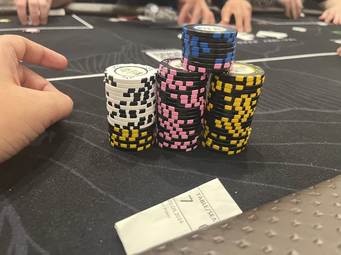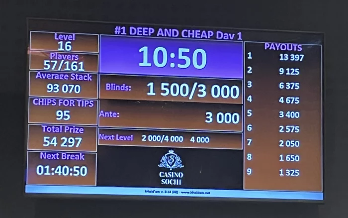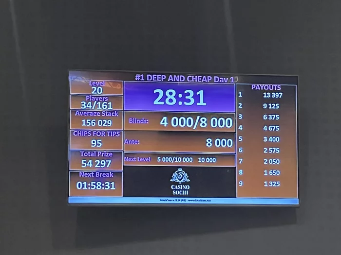 До перерыва успел неудачно блефануть 7.5к из 30к и отбить с профитом назад