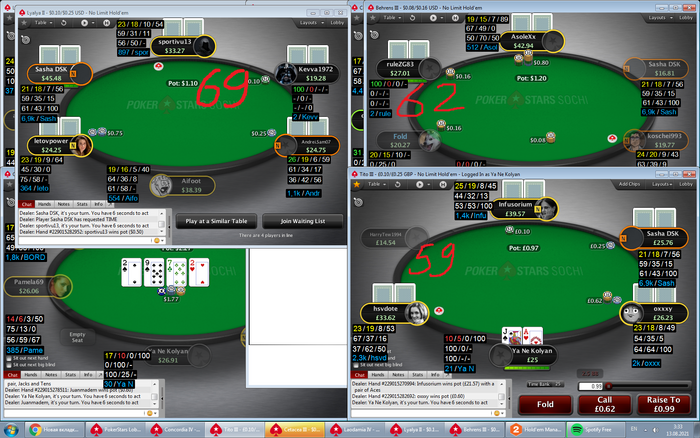 nakazator95 @ 13.08.21pornodemon, как правило на играемом лимите поле размечено, я например всегда сажусь за столы с неизвестными, пробиваю и бывает что ухожу, возможно это не правильно но в ситауте не сижу , бывает что очередность постановки ББ , ставлю ББ играю круг и ухожу. Как правило помеченных фишей видно, а когда набирается 4 стола я просто открываю каждый стол полный и размечаю всех оппонентов. По сути 90% большого поля размечено.