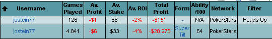 Раунд №3 = vs jostein77 И снова вылет во втором раунде, и вновь очень слабому сопернику проигрываю. Неудачно начал матч, опп оказался безбашенным и начал с 3бетов и 4бетов, скинув приличное кол-во фишек в пустую, понял, что должен сыграть максимально менее дисперсионно против такого слабого оппонента, монетки очень уж не хочется. Но отставание по фишкам росло и в совокупности с его агростайлом начало давить. В итоге на его мин. рейз, запушил свои карманные 7-ки, получил кол от J9o и посмотрев на закрывающийся раннер-раннер стрит на ривере вышел из лобби.