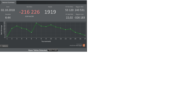 Здарова! Сегодня пару раз пересекались! Да кстати мужик хз совпадение это или нет, но я сегодня последние часов 5 сессии катал онли 6 столов, и решил сейчас больше пока не грузить, даюы более вдумчиво думаю будет +ЕВ. Завтра после больнички тоже хочу поработать над игрой, если не против можно словиться!