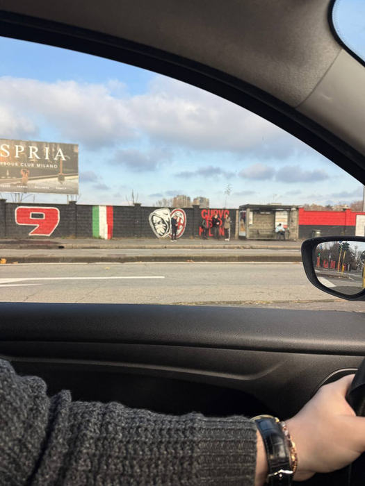 Сели в машину, и я решил заехать посмотреть на стадион Сан-Сиро. Насколько я слышал и знаю, «Милан» и «Интер» выкупили этот стадион у городских властей и планируют его демонтировать, чтобы построить новый. И как-то обидно было бы быть рядом уже третий раз в жизни и ни разу не увидеть этот легендарный стадион. А поскольку я люблю футбол и раньше, в детстве и юношестве, был настоящим фанатом и смотрел все матчи подряд, то обидно вдвойне. Находится он на окраине города, примерно в 6 км вглубь от окружной. Парковочных мест было очень много, что выглядело странно, так как в Риме их будто вообще не существует. Мы остановились и пошли погулять по площади возле Сан-Сиро. На вид он красивый, особенно понравились винтовые лестницы-колонны. Но видно, что стадион уже старый. Не самый красивый из тех, что я видел. На уровне с Камп Ноу, красивее Стадио Олимпико, но хуже, чем Донбасс Арена.