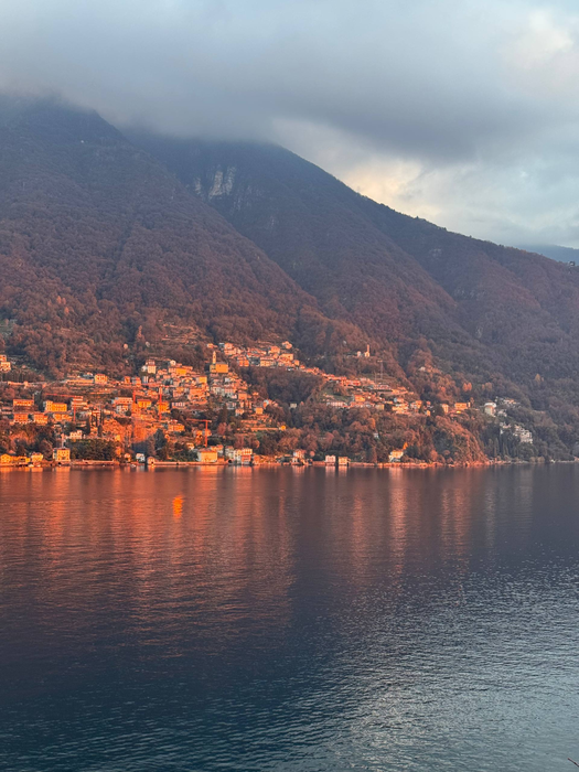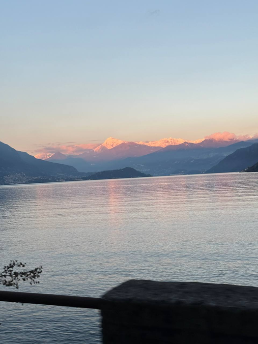 Отдав дань легендарному стадиону, нас ждал путь через озеро Комо к нашему отелю. Это было и правда что-то невероятное. Красота этой местности неописуемая. Думаю, любой человек, кто там был, подтвердит мои слова. По времени как раз был закат, и природные цветовые фильтры выглядели ещё круче, чем днём или ночью. Дороги достаточно узкие, но я ожидал, что будет намного хуже. На самом деле ехать можно спокойно, но без обгонов, конечно. Мы останавливались на нескольких смотровых площадках, делали фото и старались запечатлеть эту красоту в памяти. До этого я такого никогда не видел, хотя в жизни повидал многое. Компиляция высоких гор, огромного озера и заката останется в моей памяти навсегда.