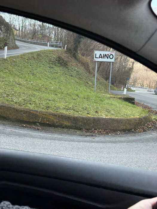 Время поджимало - ресторан был забронирован на 19:00. Поехали в номер: жене с дочерью нужно было собираться, краситься, нам с пацанами попроще - душ и всё. По дороге проезжали город с забавным названием Laino. Украинцы поймут, почему оно необычное. Город, кстати, вполне симпатичный. И ещё момент: в Италии каждый мост и каждый тоннель имеют своё название - таблички висят перед въездом. Теперь по возможности читаю и перевожу.