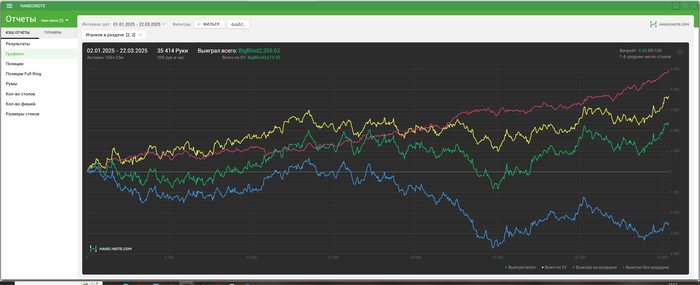 График за прошлый год выкладывал, в этом в целом складывается не очень, но на 1к уже катаю с любыми. Хоть с 1к и стала сильнее оппозиция в основном от регов5к, которые уверен тоже для формы готовы катать какое-то количество рук в день со мной.