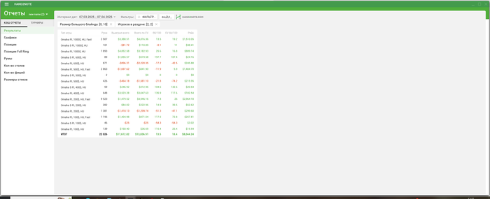 По итогу выиграл даже больше ~35к(рейкбек 12к) всего за 17дней гринда, до сих пор поражаюсь густо/пусто в омахе. В среднем стартовал с 6 часов в день, а заканчивал последнюю неделю уже 8-9 часами в день в 3-4 подхода. Без трекеров, с позой под випов и с не смотрением кассы первую неделю, а далее результаты только меня и интересовали, а поза на випа уже была особо не важна.