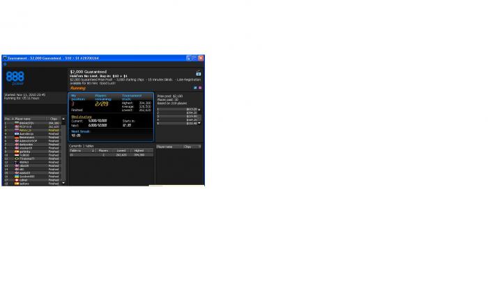 PokerStars Турнир №328078015, Безлимитный Холдем Фриролл 33 игроков(а) Бонус к призовому фонду от PokerStars: $100.00 USD Общий призовой фонд: $100.00 USD Турнир начался 25.11.2010 22:00:00 MSK [25.11.2010 14:00:00 ВВ]