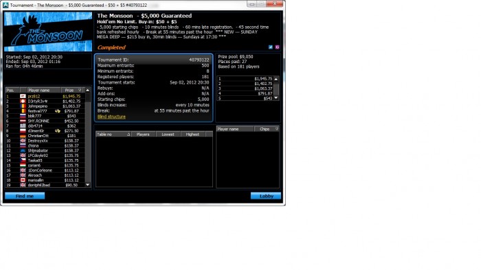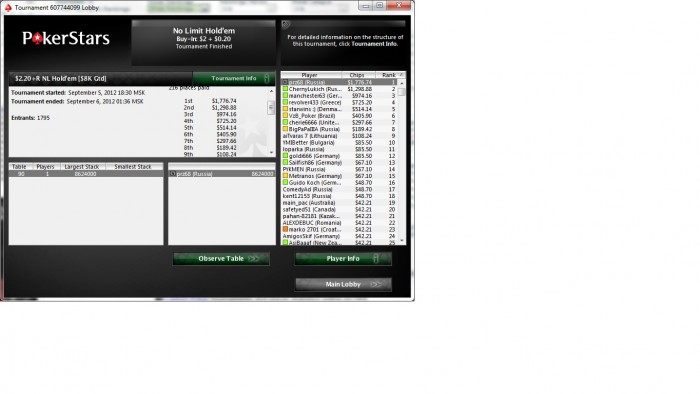 Блин, пропустил вчера день рождения блога ))) 2 сентября 2011 я его начал вести, так что сегодня ему ровно год и 1 день! За этот год многое изменилось, как в игре, так и в жизни. Может быть как-нибудь соберусь с силами и напишу большой пост по этому поводу. Ну а пока вкратце о покерном: