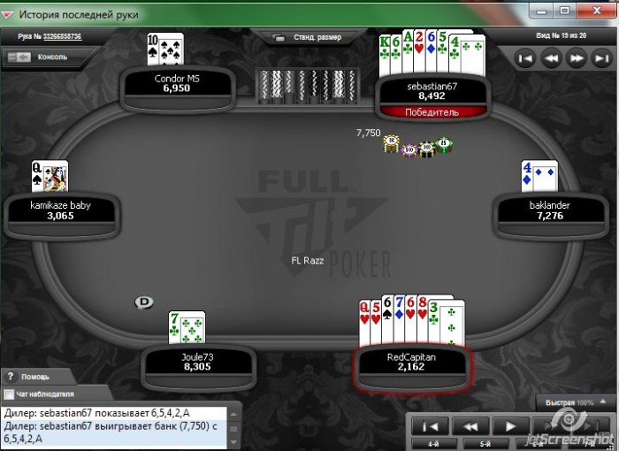 RedCapitan shows a full house, Sixes full of Fives, for high
