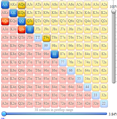 Задам примерный ренж. Я вообще не ебу честно говоря что он любит 3бетить, будет ли он например 3бетить QJo, которые ужасно будет играть ооп в 3бет поте, будучи доминируемы ну пиздец всем-всем моим ренжем кола почти.