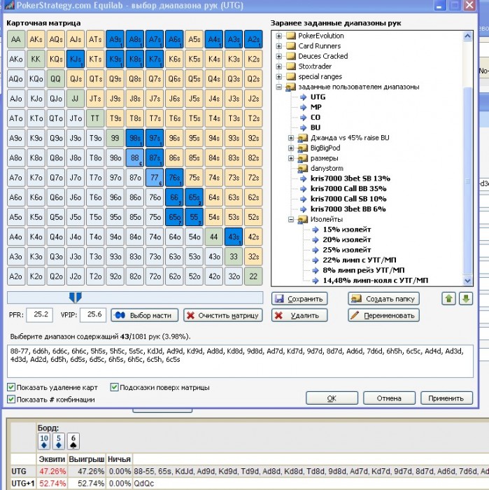 А тут наоборот в никуда пуш... Больше подошла бы небольшая ставка 20-25%.Poker Stars $0.02/$0.05 No Limit Hold'em $0.01 Ante - 5 players - View hand 2545709