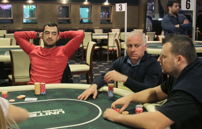 Карабаджакян и Пригарный с надеждой смотрят через плечо, на стол Смирнова, и напевают ему на ухо: "Давай, Тоха, натяни свой капюшон, - и выбей кого-нибудь, наконец! Пора за финальный стол..." Сами они при этом играют довольно острожно, чутко реагируя на колебания силы за своим столом.