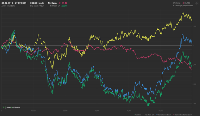 Даже нл2 не побил лошара(( Да и на остальных лимитах резалты сильно так себе. Все еще играю как человек с iq как у хлебушка.