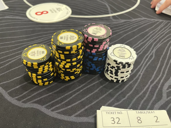При этом я учел главный лик поля и регнулся за час до начала, реги ленивые и был приличный шанс зацепить хороший стол. Страта сработала, за столом был только один рег, причем не сильно сложный. Но только я начал наживать, как подошел блайнд и флор с контейнером для фишек