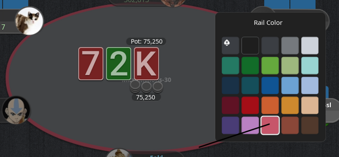 - в отсутствии возможности использовать статичный цвет для фона, стола и сукна заданные в лейауте (приходится выбирать из ограниченного количества предустановленных в клиенте).