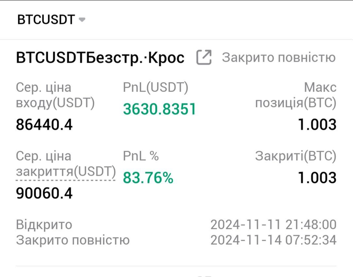 Закрывал двумя частями по 96К и 95К, средняя цена вышла около 95 500.