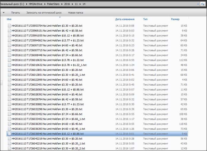 привет! Подскажите как можно исправить проблему: ХМ2 начал разбивать мои цельные хэнд хистори туриков на несколько частей, т.е если я зайду в папку HM2Archive то я уже не могу найти там целый турик, все HH он разбивает на куски как ему вздумается. Как видно на скрине, какие то из них весят >100кб а какие то совсем мало.