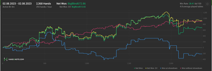 Вчера отыграл самую длинную сессию в этом году, планирую с этого месяца играть минимум 4 дня в неделю по 6-8 часов, один день будет для выходного, один день для работы Над игрой и подготовление обучающего контента и 2 дня в неделю буду выделять только тренировкам с игроками моего фонда и тех обучается у меня в других форматах. Я посчетал колво учеников в дании момент = 25. Активных гдето 12. В Прошлом месеце я отфильтровал много учеников, было примерно 40. Прекратил сотрудничество самами неперспективнами по мойму скромному мнению. Што освабадило мне времени дле кактки и пoка после 6 месецнаво перерыва я ворвалсе очень солидно А всё потому что что все эти 6 месяцев рассчитывал префлоп, постфлоп, анализировал тенденции Поляны + обучал, што позволило закрепить и освоить логически кучу информации, методом повторения аднаво и тавожесамаво ученикам. A не ебалом по клаве Tакже очень изменил свой подход к изучению, обучению. Всё просто! Копирую самых топовых игроков и их методику работы Над игрой, немного добавляю своего опыта и всё адаптирую. Когда я уходил с Greenline я был можно сказать чисто бамхантером. Красная у меня падала вниз. Теперь же я просто разрываю те составы которые я играю по всем линиям 💪 В Greenline я пробыл больше 2.5 лет. Несколько раз пробовал заниматься с топовыми игроками и тренерами Greenline, каждая тренировка заканчивалась беседой и в основном половину времени я говорил, потому что мне есть что сказать 😄 В итоге ни один из игроков и тренеров мне не дал там буста, был сам по себе, даже привёл туда своих учеников и работал с ними, со временем это оказалось не самой профитной затей и я перестал тренировать свою группу в Greenline, тренил своих учеников дальше индивидуально. Прошло 8 месяцев как меня нету в Greenline. Уже имею свой фонд и считаю что у меня лучше условия для игроков! Да-да это реклама! Есть ещё три свободные слота для адекватных, перспективных игроков которые хотят проявить максимально свой потенциал, все условия для этого есть! Минимум 100К рук далжно быть сыграно на лимитах НЛ50+ с положительным результатом!