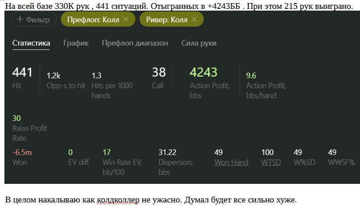 Сегодня решил посмотреть свои коллы ривера когда я колдколлер по префлопу, в т.ч. на СБ и ББ.