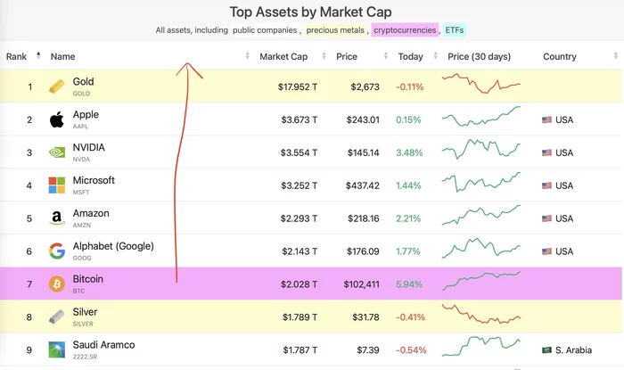 А во-вторых цель биткоина (именно как продукта) - стать более эффективной заменой золота. Никто же не задается вопросом кто оплачивал банкет всё это время с золотом https://companiesmarketcap.com/assets-by-market-cap/