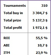 Задача пока одна: отыграть до конца месяца минимум 300 турниров, и отыграть их в +
