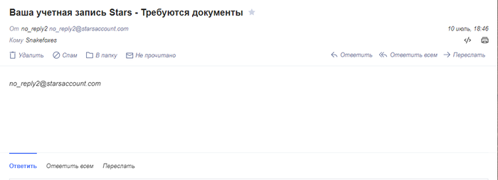 Snakefoxes @ 12.7.2020 Повесили ограничения на учетку, пришло такое вот письмо: Написал им сразу что конкретно им нужно, два дня тишины. Мб кто в курсе что от меня хотят?