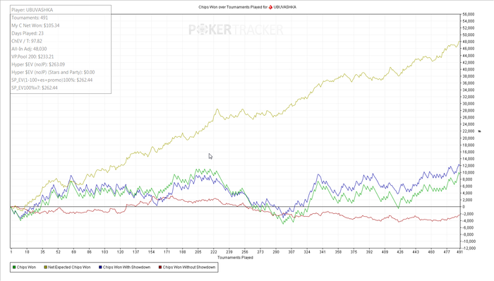 В этом месяце набиваю БР и на 5ки, в июне увеличил количество турниров до 70ти в день, надо дойти хотя бы до 100.