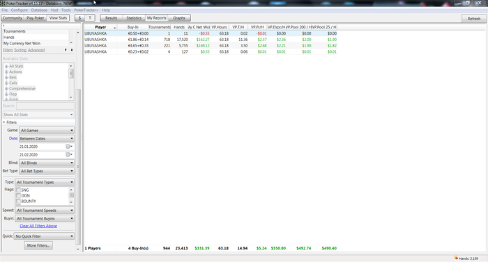 Покер - Бр на ес 120 (150 вывел на НГ), Бр на ком 150 (после расчётов пула будет 80+-). Цели: те же + 1: увелечение отыгрываемой дистанции, ато чёт совсем мало, даже до 2к не дошёл. Катаю 2ки там и там, НГ чутка обезжирил, ну не впервой - наверстаю.