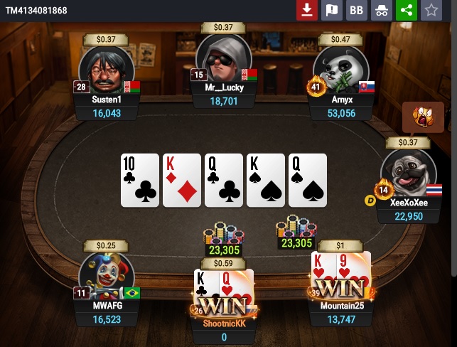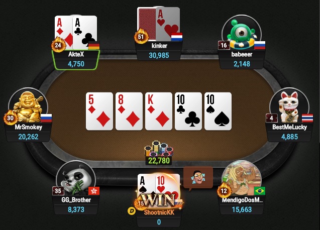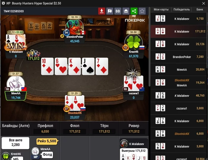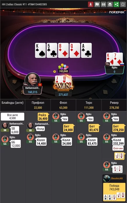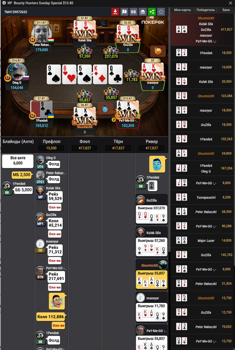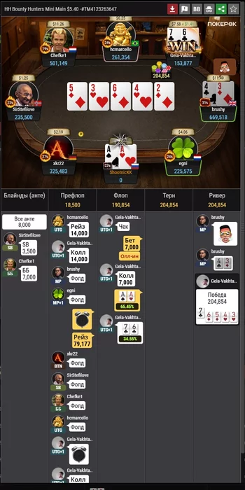 Например вот, в турнире на 8500тел за 20 человек до денег 🤪 (За одну раздачу фактически)