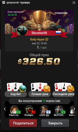 В покере после выигрыша турнира происходит какая то отчаянная пиханина.