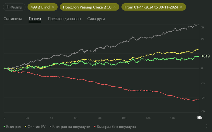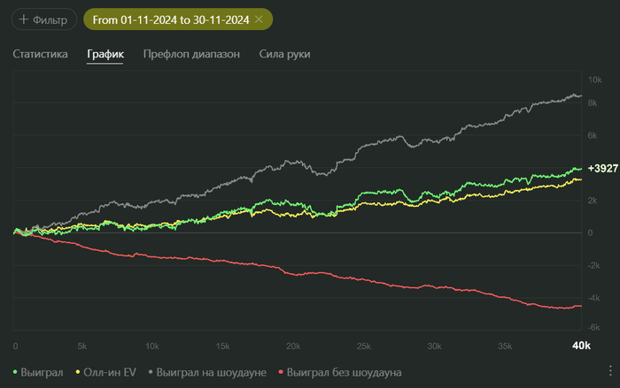 напомни, что у тебя за работа, как ты всегда успеваешь отыгрывать по 500+ турниров каждый месяц, большинство регов, которые только играют в покер, не отыгрывают столько игр в месяц