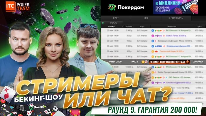 Ищите турнир Бекинг-шоу ITCPokerTEAM в лобби Покердом, 20 мая, 20:00 МСК.