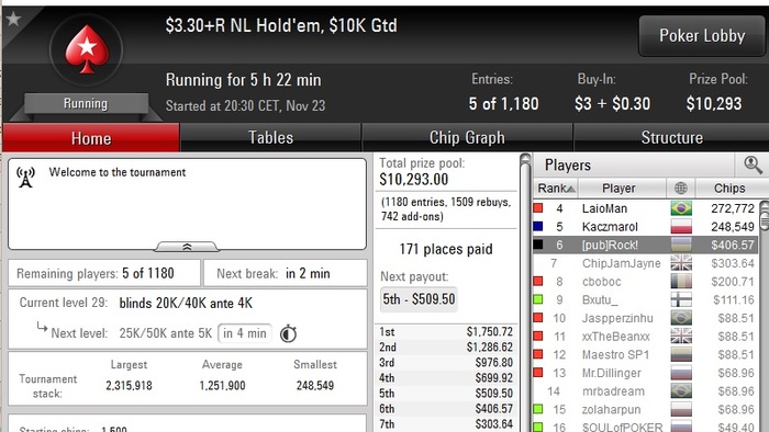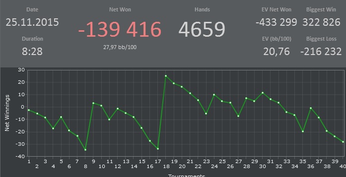 GGWP Отыграл 40 турниров в +100$ Играл хорошо, но все равно допустил пару грубых ошибок... Единственная финалка которая была- 2.2 6макс... Вылетел 6тым AQo<A7o вообще без шансов как-то было=( Спасибо всем кто смотрел стрим! Удачи!