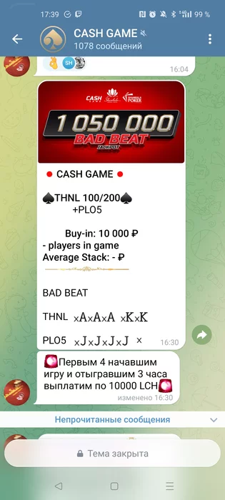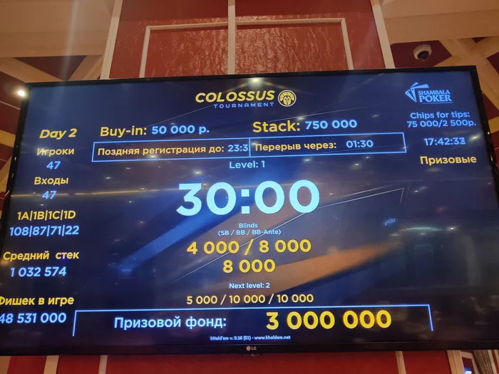 Ладно, я в турнир пошел всё равно, стек 790к, поздняя рега 6 уровней, затем уже на вылет.