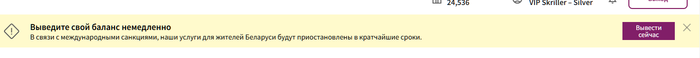 Billy @ 05.09.24Возможно из-за того, что есть ограничение переводов скрилов для беларусов.