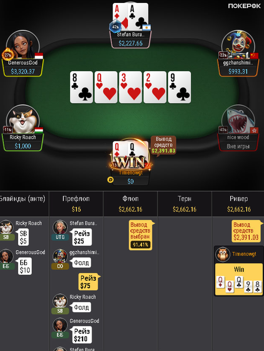 Stefan11222, получается лимиты до 5ка можно пройти собирая пасьянс или это слишком сильное упрощение ? Как против тебя подстраиваются оппоненты на 1ка в среднем,они закрываются в тайт сторону или наоборот пытаются агро жопой надавить на кактус?