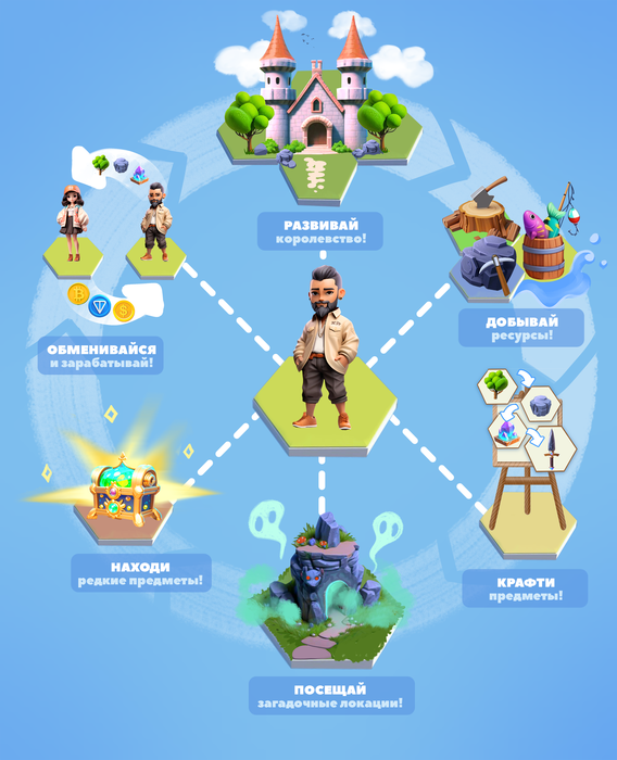 - Продажа ресурсов и предметов за крипту.
