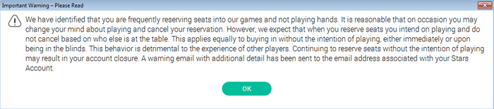 RobbenCash @ 14.08.21есть реги, которые залетают под неизвестного или загоревшуюся «R», и если фиш оказался так себе, эти ребята сразу сье’ывают. есть даже такие, которые ждут в сите пока займётся место и так же с’убывают, если сел неинтересный фиш. В этот момент другие реги катают стол с низким ожиданием, пока эти “овноеды занимают место, на которое мог бы сесть фиш. Ну, сел ты, ну, фиш не очень оказался, запости бб, откатай круг и иди дальше селекти.