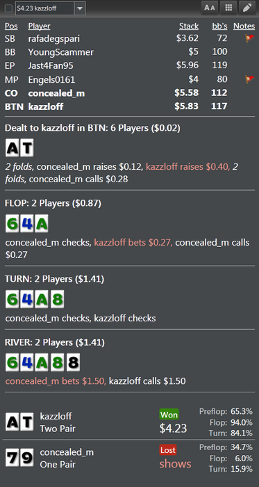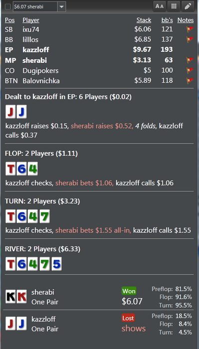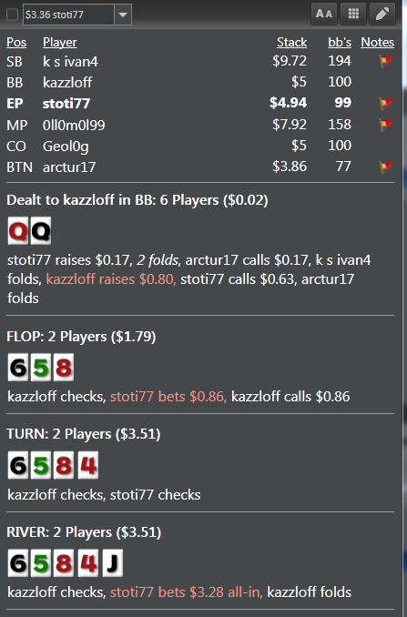 FancyBear, да просто подумал,посчитал и нажал фолд изи. 7-8 комб меня бьют,оверпары так не поставят,недоехавшие дро -тоже. Не видел рук хуже ,поэтому и упал. Сейчас разве что заметил,что там могли быть 98 черви доехать,но тоже вряд ли так смело будут овербетить.