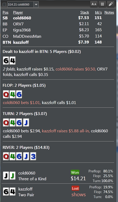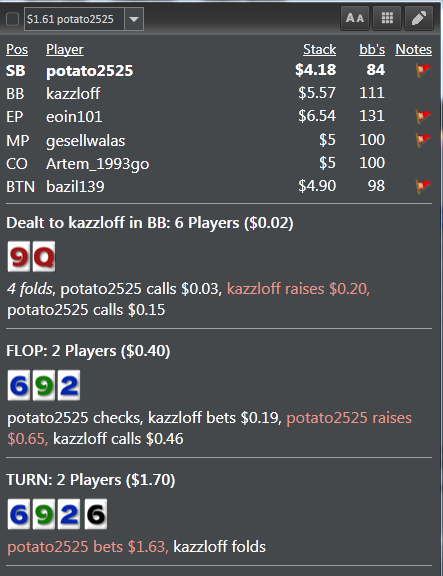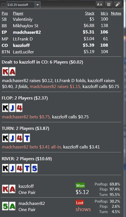 В следующих двух ловлю их блефы ,пока не овербетные,а всего в потбет,но все равно приятно.
