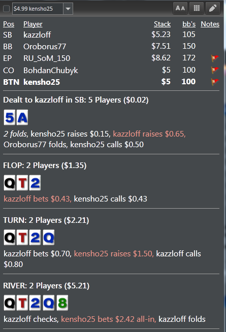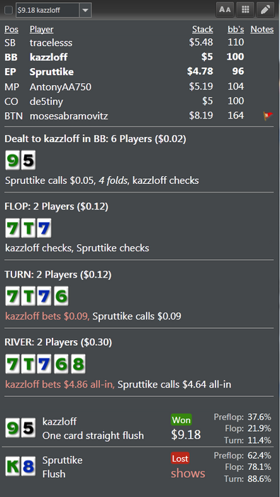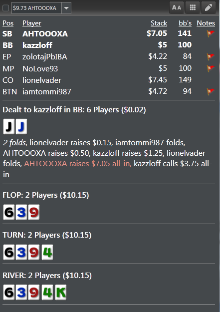 Снова недооцениваю оппа с коротким стеком,думал упасть на флопе,но потом решил ,что это какой то пиздец.